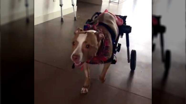 Joining our troupe of dogs that were born healthy is Nova, a bully breed that was the picture of muscular strength before he was afflicted with intervertebral disc disease (IVDD). Lynn, Nova's owner, explained in an emotional yet inspiring TikTok that her and Nova's daily routine had changed drastically since the diagnosis. The running, jumping dog suddenly needed help with basic movements.