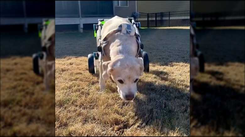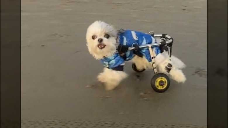 One commenter who watched Belle's joyous run said, "What an absolute legend," while another added, "You go, Belle!" People love seeing an animal maintain its curiosity and zest for life after an accident. It's proof that the spirit is indomitable. Even a fibrocartilaginous embolism (FCE) — a stroke that causes part of the spinal cord to die — wasn't enough to darken Belle's bright mood. Another commenter suggested that getting a wheelchair is what gave Belle her spark back. The wheels provided an outlet for all of her zany energy.