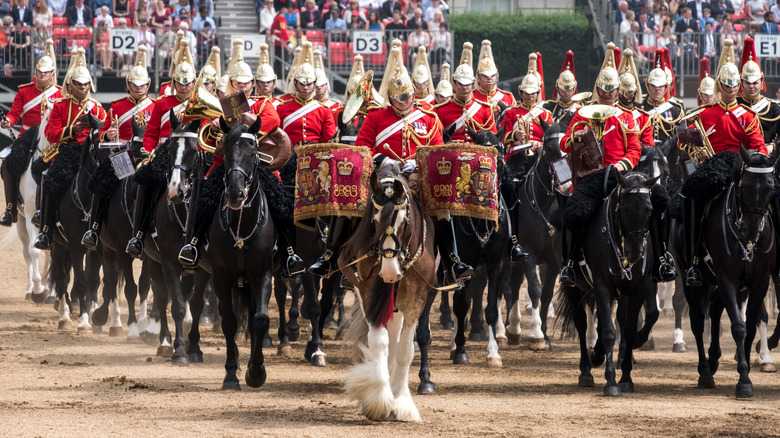 The drum horse is an example of people cross breeding horses to fulfill a role. This equine can be seen carrying soldiers and drums during the Band of the Household Cavalry (formerly Band of the Life Guards) processions. The regal, tall, and calm demeanor of the modern-day drum horse — prized for its ability to navigate British processions — comes from combining traits of Clydesdale, Gypsy Cob, and Shire breeds.