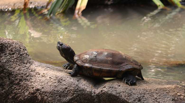 Land turtles, such as cooters and red-eared sliders, also swim well thanks to webbed feet allowing them to paddle through rivers and ponds. Other land turtles, including snapping turtles and alligator turtles, actually walk along the bottom of water bodies. Larger freshwater turtles don't swim as quickly as smaller freshwater turtles, but the average freshwater turtle swimming speed is 10 to 12 miles per hour.